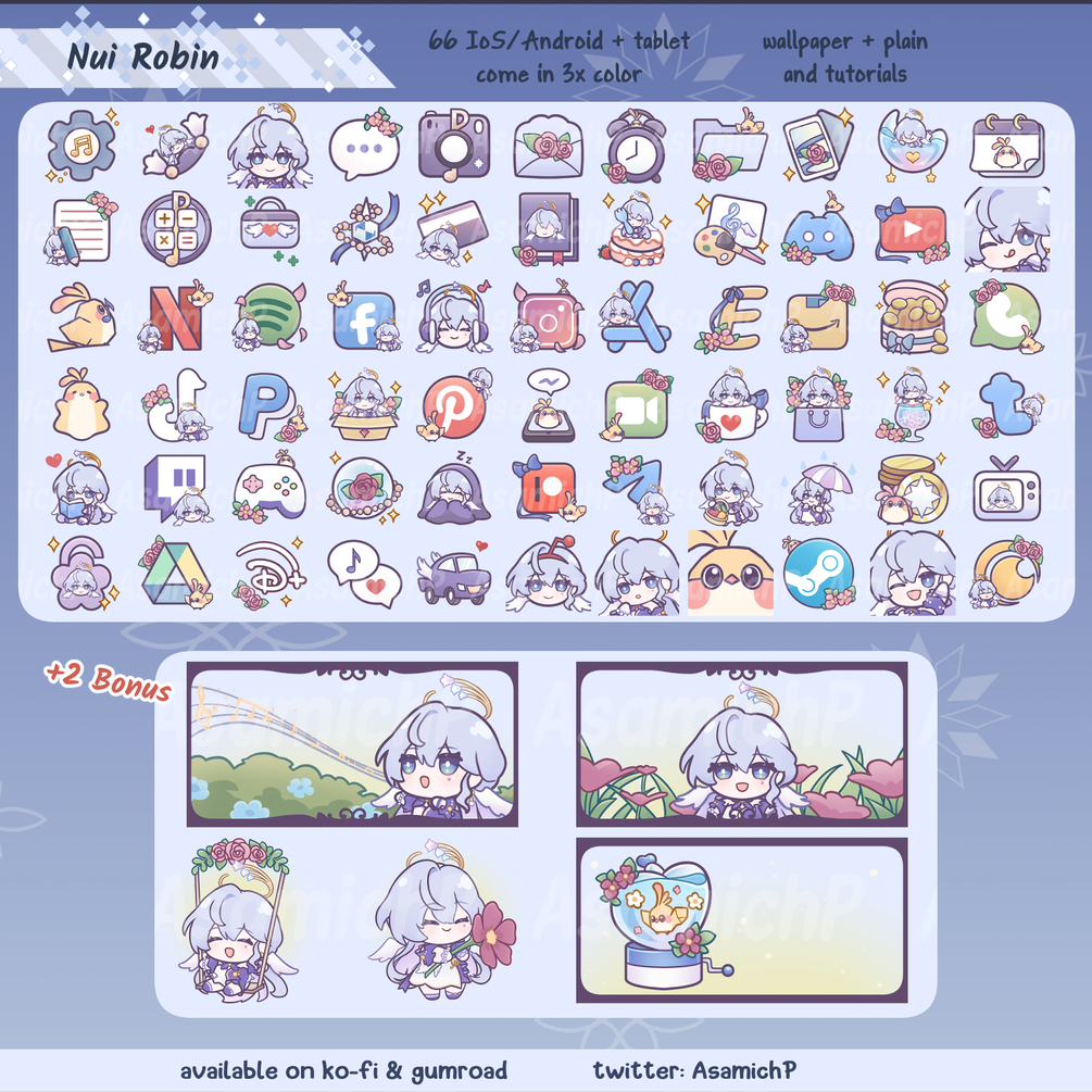 These icons need to be installed manually (tutorials included). All artwork is hand-drawn by me ✨